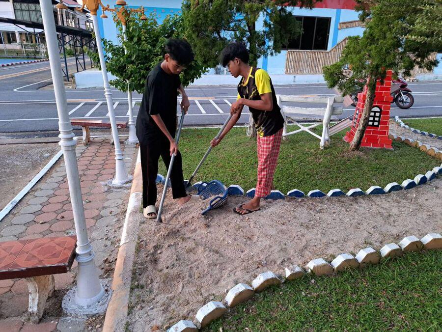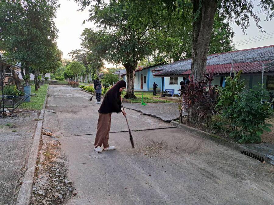 กิจกรรมยามเช้านักศึกษาในโครงการอยู่ประจำ เรียนฟรี มีอาชีพ วิทยาลัยการอาชีพรามัน ประจำวันที่ 29 สิงหาคม 2566