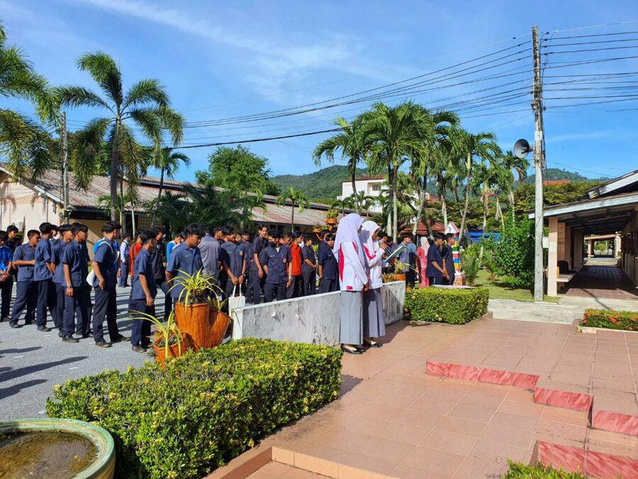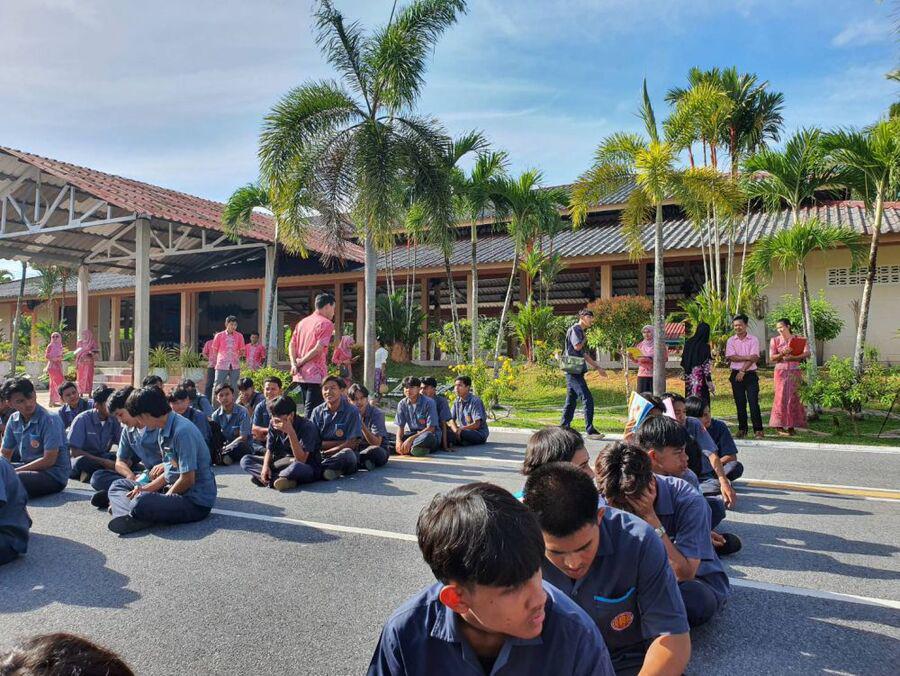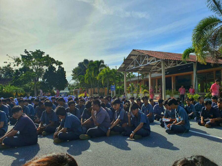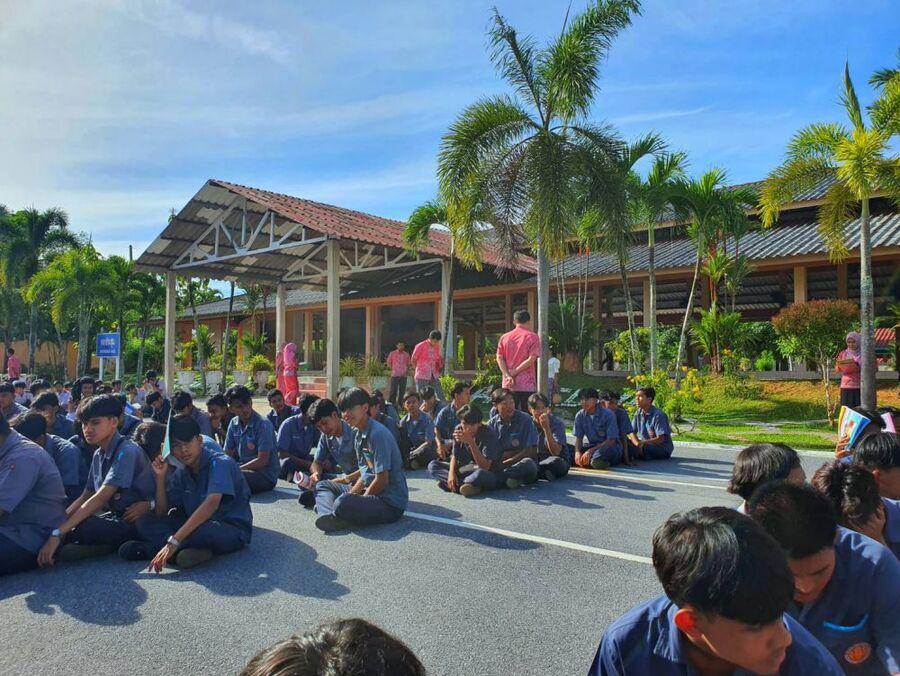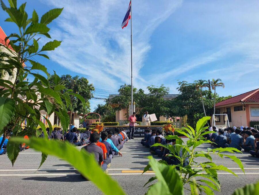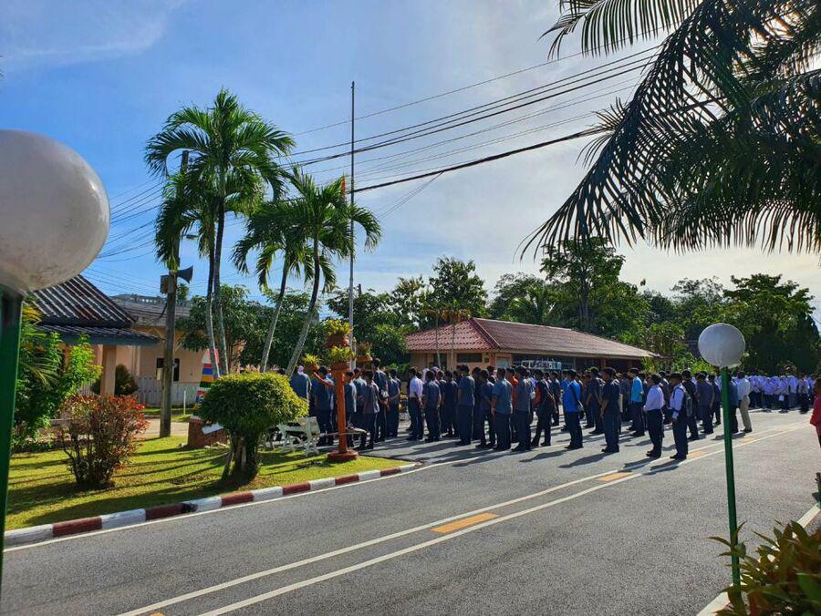 กิจกรรมตอนเช้า ของนักเรียน นักศึกษา วิทยาลัยการอาชีพรามัน ประจำวันอังคาร ที่ 29 สิงหาคม 2566
