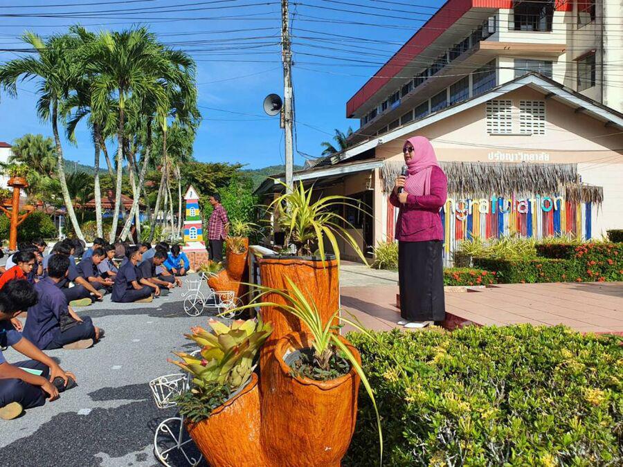 กิจกรรมตอนเช้า ของนักเรียน นักศึกษา วิทยาลัยการอาชีพรามัน ประจำวันอังคาร ที่ 29 สิงหาคม 2566 โดยนางสาวนิสารัตน์ เสมอภพ ครูผู้สอนประจำแผนกเทคโนโลยีดิจิทัล วิทยาลัยการอาชีพรามัน พบปะให้โอวาทแก่นักศึกษา S:0