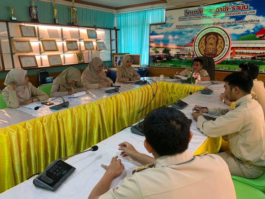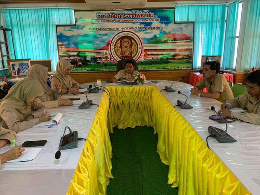 วันจันทร์ ที่ 4 กันยายน 2566 นายมาลิกี บาฮา รองผู้อำนวยการวิทยาลัยการอาชีพรามัน เป็นประธานประชุมเตรียมการงานบ่มเพาะเพื่อพัฒนาและดำเนินกิจกรรมต่างๆที่เกี่ยวข้อง 1.กิจกรรมศึกษาดูงานธุรกิจ 2.กิจกรรมธุรกิจประจำปี2566และธุรกิจต่อยอด ประจำปี2565 ณ ห้องประชุมชั้น2 อาคารวิทยบริการ S:0