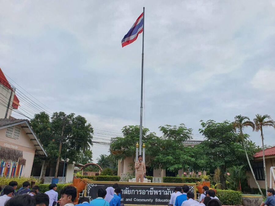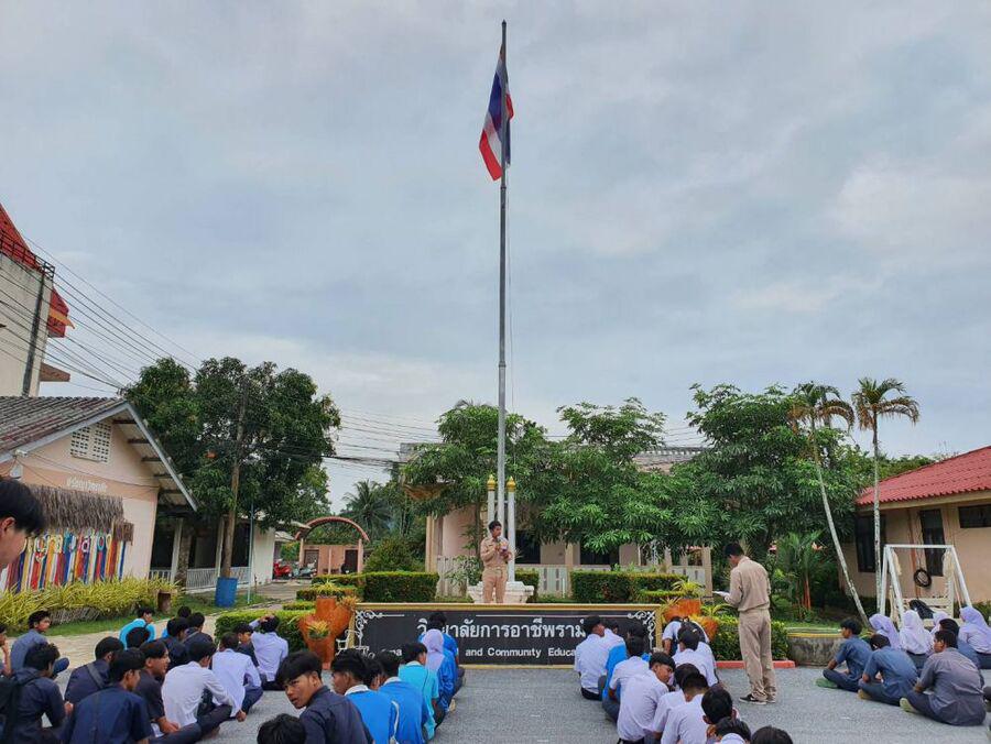 กิจกรรมตอนเช้า ของนักเรียน นักศึกษา วิทยาลัยการอาชีพรามัน ประจำวันจันทร์ ที่ 4 กันยายน 2566 โดยนายแคฟรี สะนิ ครูผู้สอนประจำแผนกไฟฟ้ากำลัง พบปะให้โอวาทแก่นักศึกษา S:0