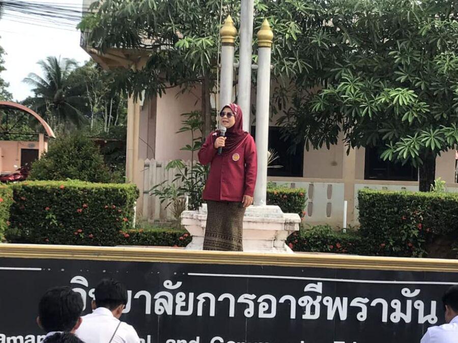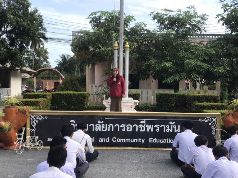 กิจกรรมตอนเช้า ของนักเรียน นักศึกษา วิทยาลัยการอาชีพรามัน ประจำวันพุธ ที่ 6 กันยายน 2566 โดยนางฟาอีสะ ศรีตุลาการ ครูคศ.2 ทำหน้าที่รองผู้อำนวยการฝ่ายวิชาการ วิทยาลัยการอาชีพรามัน พบปะให้โอวาทแก่นักศึกษา S:0