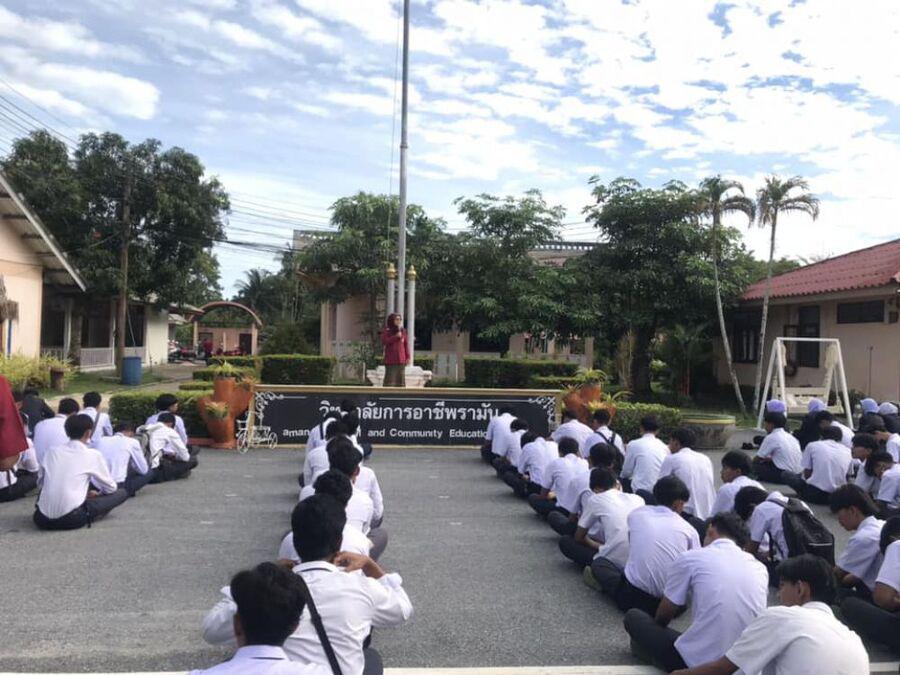 กิจกรรมตอนเช้า ของนักเรียน นักศึกษา วิทยาลัยการอาชีพรามัน ประจำวันพุธ ที่ 6 กันยายน 2566