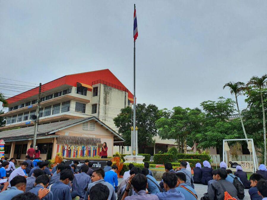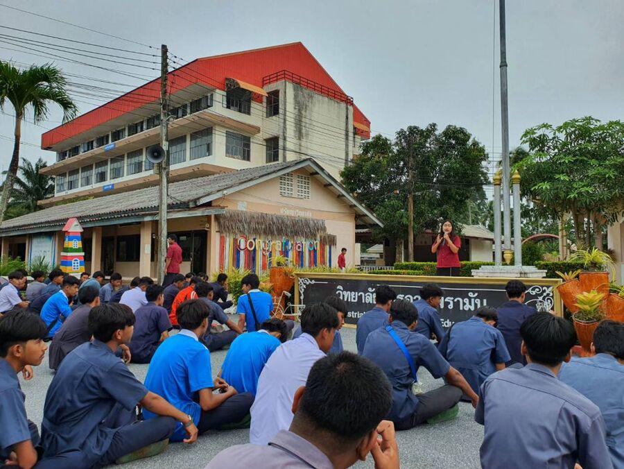 กิจกรรมตอนเช้า ของนักเรียน นักศึกษา วิทยาลัยการอาชีพรามัน ประจำวันพฤหัสบดี ที่ 14 กันยายน 2566 โดยนางสาวศุภลักษณ์ คงทอง ครูผู้สอนประจำแผนกสามัญสัมพันธ์ พบปะให้โอวาทแก่นักศึกษา S:0