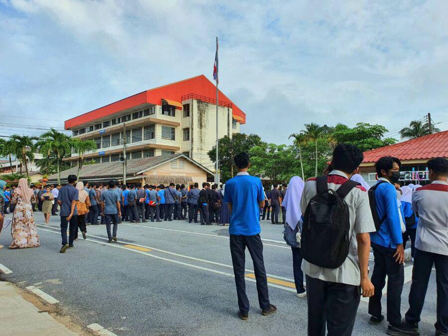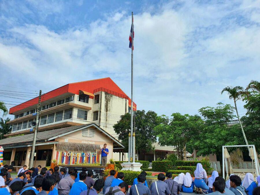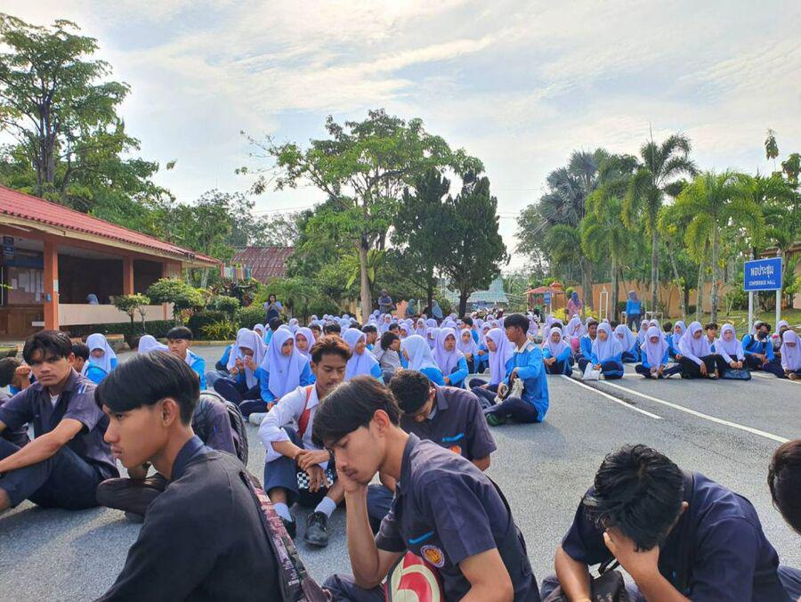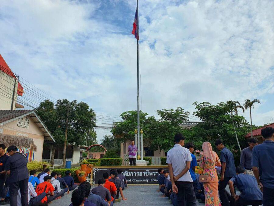 กิจกรรมตอนเช้า ของนักเรียน นักศึกษา วิทยาลัยการอาชีพรามัน ประจำวันศุกร์ ที่ 15 กันยายน 2566 วันสุดท้ายในการจัดการเรียนการสอนของเทอม 1/2566