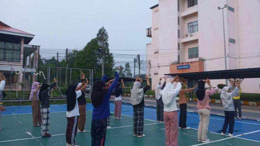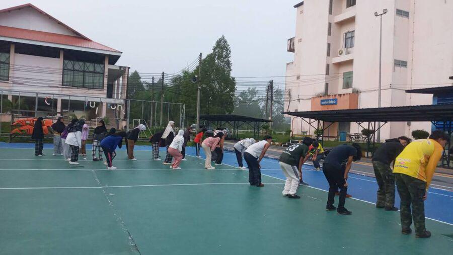 กิจกรรมยามเช้านักศึกษาในโครงการอยู่ประจำ เรียนฟรี มีอาชีพ วิทยาลัยการอาชีพรามัน ประจำศุกร์ ที่ 15 กันยายน 2556
