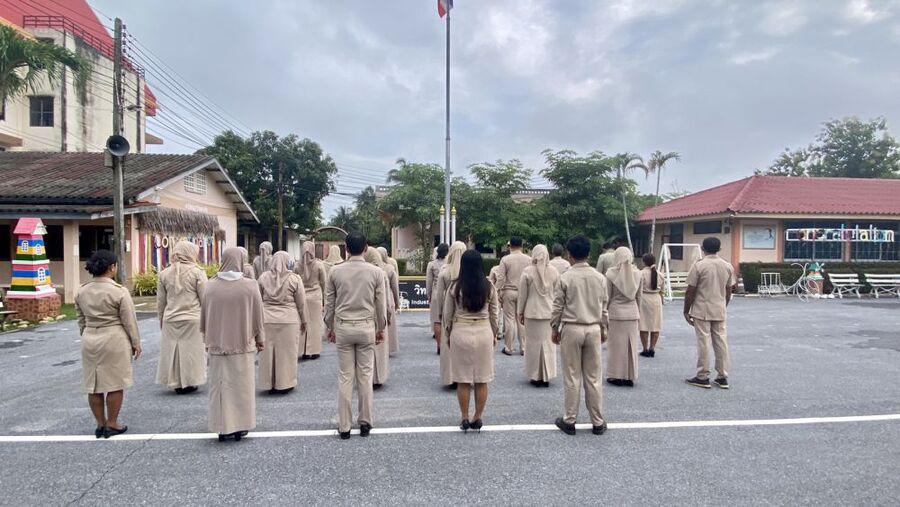 วิทยาลัยการอาชีพรามัน จัดกิจกรรมเข้าแถวเคารพธงชาติ เนื่องในวันพระราชทานธงชาติไทย โดยมีคณะครู บุคลากรทางการศึกษา เข้าร่วม ณ บริเวณหน้าเสาธง วิทยาลัยการอาชีพรามัน
