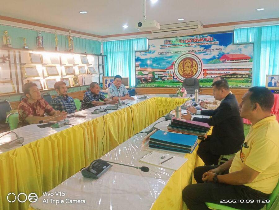 9 ตุลาคม 2566 นายประมุข กออวยชัย ผู้อำนวยการวิทยาลัยการอาชีพรามัน ร่วมเป็นคณะกรรมการในการประเมินตามแนวปฏิบัติการจัดทำข้อตกลงในการพัฒนางาน (PA) ของข้าราชการครู ณ ห้องประชุมชั้น 2 อาคารวิทยบริการ วิทยาลัยการอาชีพรามัน S:0