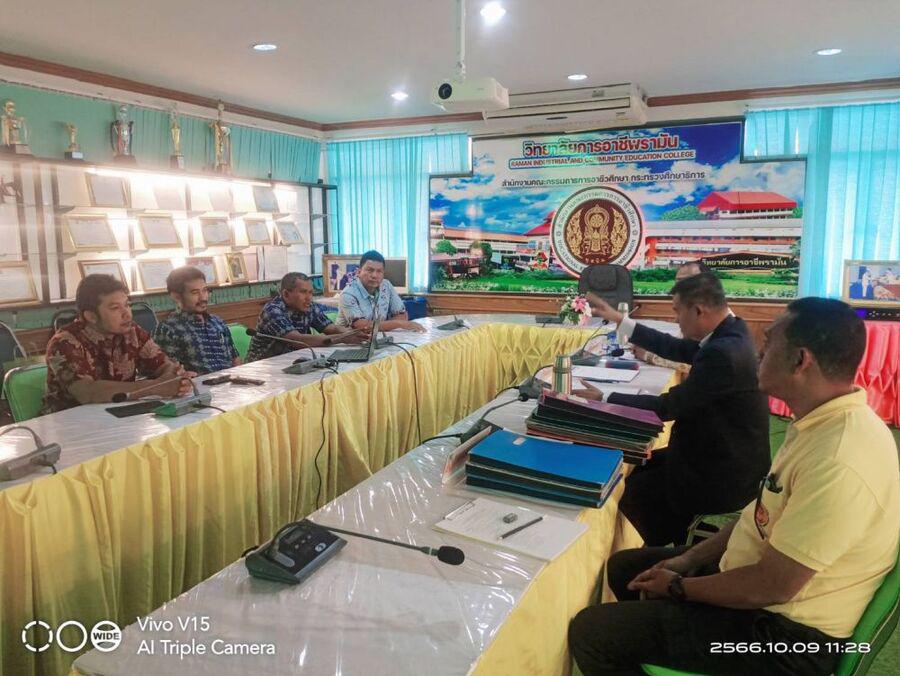 การประเมินตามแนวปฏิบัติการจัดทำข้อตกลงในการพัฒนางาน (PA) ของข้าราชการครู ณ ห้องประชุมชั้น 2 อาคารวิทยบริการ วิทยาลัยการอาชีพรามัน