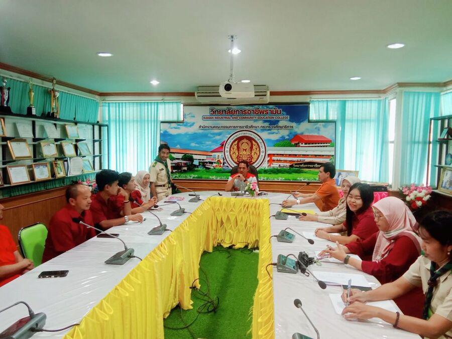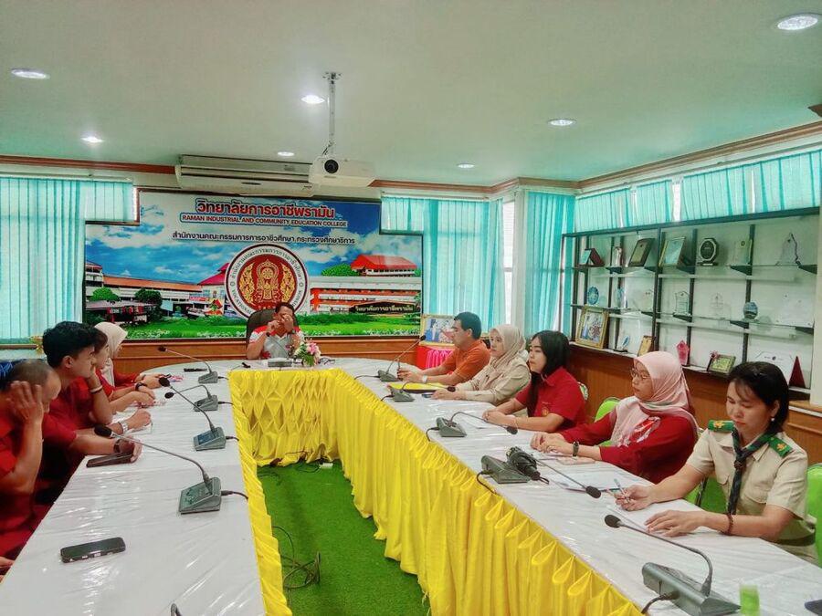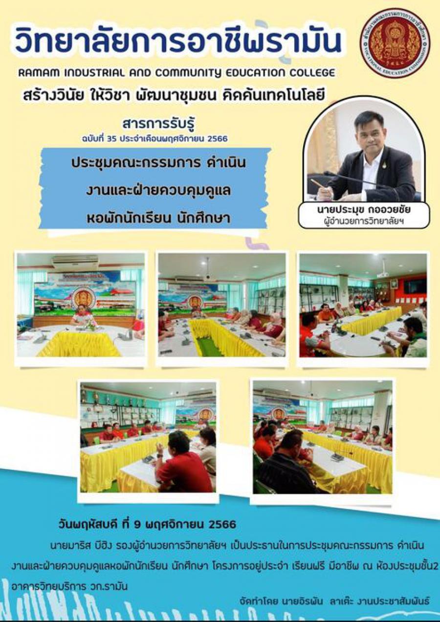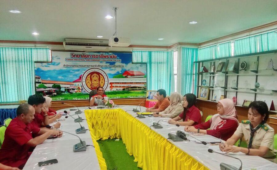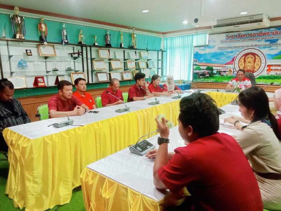 วันพฤหัสบดี ที่ 9 พฤศจิกายน 2566 นายมาริส บีฮิง รองผู้อำนวยการวิทยาลัยการอาชีพรามัน เป็นประธานในการประชุมคณะกรรมการดำเนินงานและฝ่ายควบคุมดูแลหอพักนักเรียน นักศึกษา โครงการอยู่ประจำ เรียนฟรี มีอาชีพ ณ ห้องประชุมชั้น2 อาคารวิทยบริการ วก.รามัน S:0