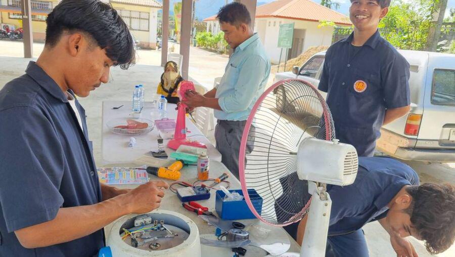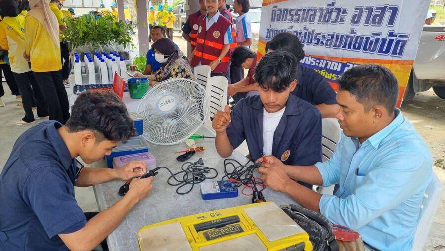 วันจันทร์ ที่ 4 ธันวาคม 2566 นายประมุข กออวยชัย ผู้อำนวยการวิทยาลัยการอาชีพรามัน พร้อมด้วย นายมาริส บีฮิงรองผู้อำนวยการฯทำหน้าที่ผู้อำนวยการ ศูนย์รือเสาะ ได้มอบหมายให้คณะครูศูนย์รือเสาะ และทีมงาน fix it center เข้าร่วมจิตอาสาเนื่องในวันพ่อแห่งชาติ ร.9 พร้อมให้บริการ ซ่อมเครื่องใช้ไฟฟ้า และตรวจเช็คเปลี่ยนถ่ายน้ำมันเครื่องให้กับประชาชนทั่วไป พร้อมประชาสัมพันธ์รับสมัครนักเรียน นักศึกษาใหม่ ณ อบต.ลาโละ อ.รือเสาะ จ.นราธิวาส S:0