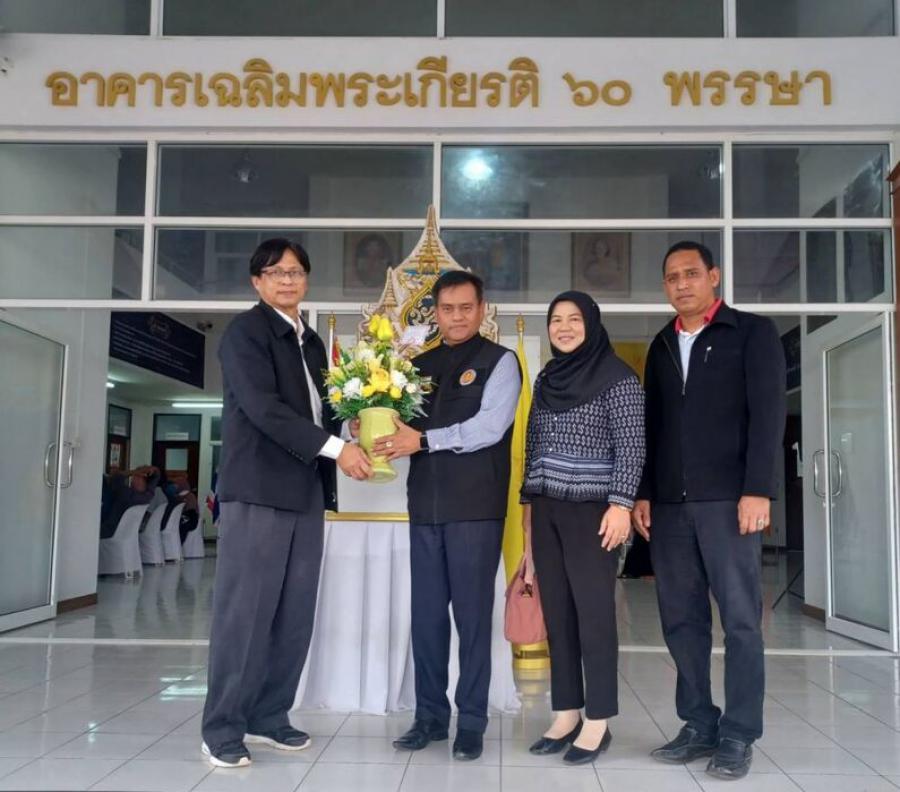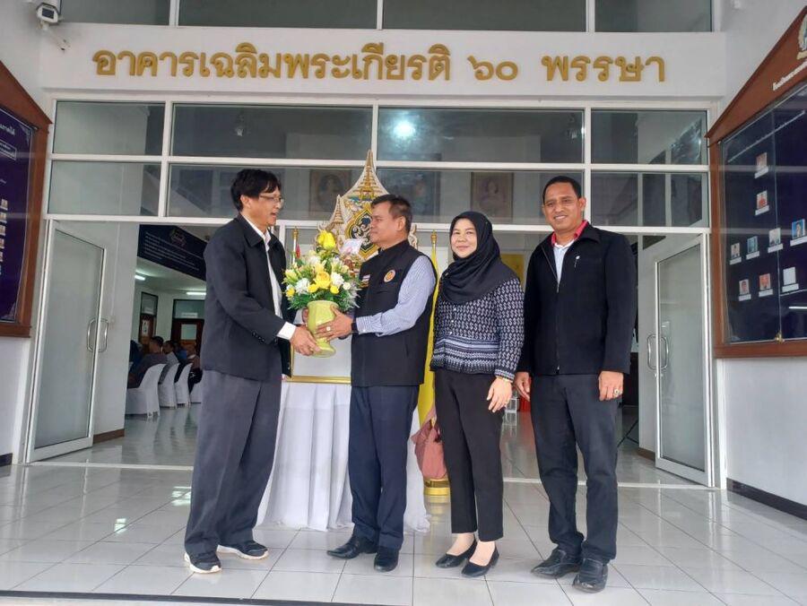 นายประมุข กออวยชัย ผู้อำนวยการวิทยาลัยการอาชีพรามัน พร้อมด้วยนายมาริส บีฮิง และนางฟาอีสะ ศรีตุลาการ รองผู้อำนวยการฯ เข้าพบดร. พีระศักดิ์ รัตนะ เพื่อแสดงความยินดีเนื่องในโอกาสมารับตำแหน่ง ผู้อำนวยก
