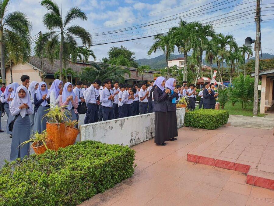 วันพุธ ที่ 20 ธันวาคม 2566 วิทยาลัยการอาชีพรามัน พร้อมด้วยคณะผู้บริหาร คณะครู บุคลากรทางการศึกษา และนักเรียน นักศึกษา ดำเนินกิจกรรมการเข้าแถวหน้าเสาธงของนักเรียน นักศึกษา วิทยาลัยการอาชีพรามัน ในการนี้ นายประมวล สำเภาสงฆ์ ครูผู้สอนประจำแผนกวิชาการบัญชี พบปะพูดคุยชี้แจงข้อมูลข่าวสารให้กับนักเรียน นักศึกษาทราบ พร้อมทั้งให้โอวาทแก่นักเรียน นักศึกษา S:0
