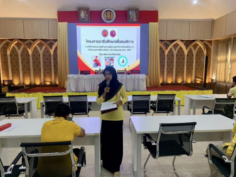 วิทยาลัยการอาชีพรามัน ได้ดำเนินการจัดโครงการอาชีวศึกษาเพื่อคนพิการ ภายใต้กิจกรรมการสร้างความรู้ ความเข้าใจการขับเคลื่อนดำเนินงานด้านการศึกษาพิเศษ ประจำปีงบประมาณ 2567