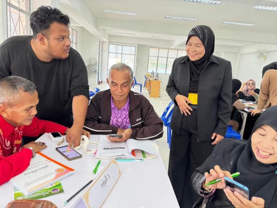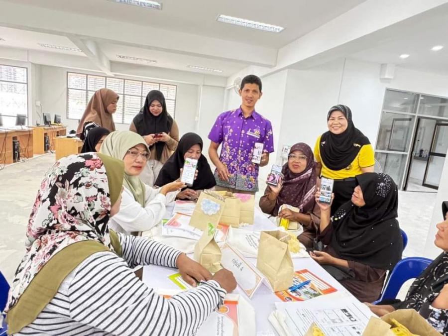 นางฟาอีสะ ศรีตุลาการ รองผู้อำนวยการวิทยาลัยการอาชีพรามัน เข้าเยี่ยมเเละให้กำลังใจเเก่ผู้เข้ารับการฝึกอบรมกลุ่มอาชีพเกี่ยวกับการออกแบบผลิตภัณฑ์ด้วยโปรแกรม Canva พร้อมนำเสนอผลิตภัณฑ์สู่ตลาดออนไลน์
