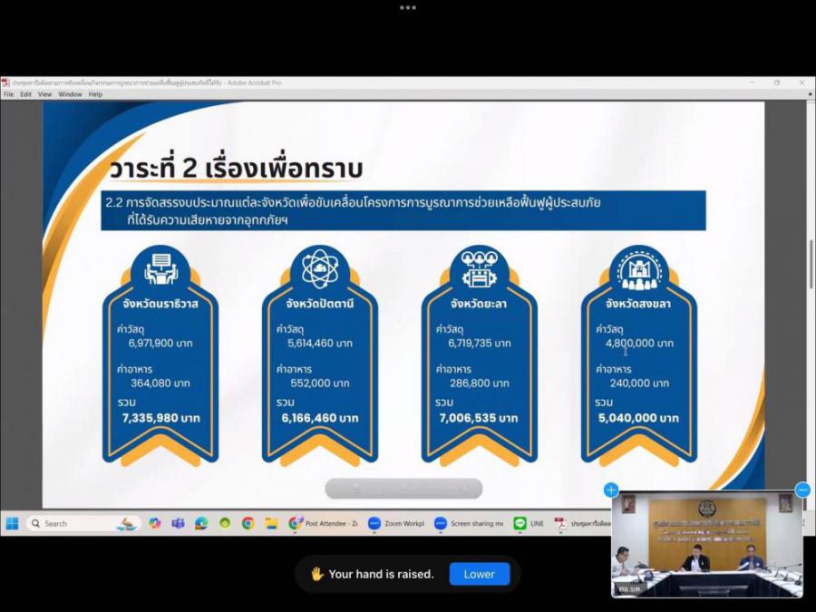 วันศุกร์ ที่ 17 มกราคม 2568 นายประมุข กออวยชัย ผู้อำนวยการวิทยาลัยการอาชีพรามัน มอบหมายให้นายมาหะมะ อะแซ หัวหน้าโครงการพิเศษและการบริการชุมชนพร้อมด้วยเจ้าหน้าที่ฯ เข้าร่วมประชุมการขับเคลื่อนกิจกรรม การบูรณาการช่วยเหลือฟื้นฟูผู้ประสบภัยที่ได้รับความเสียหายจากอุทกภัยในพื้นที่จังหวัดชายแดนภาคใต้ ประจำปีงบประมาณ 2568 ผ่านระบบ Zoom Meeting S:0