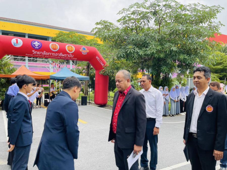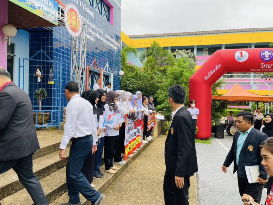 นอังคาร ที่ 28 มกราคม 2568 นายประมุข กออวยชัย ผู้อำนวยการวิทยาลัยการอาชีพรามัน พร้อมด้วยนายมาริส บีฮิง นางฟาอีสะ ศรีตุลาการ รองผู้อำนวยการฯ คณะครู บุคลากรทางการศึกษา และนักเรียนนักศึกษา ร่วมต้อนรับ