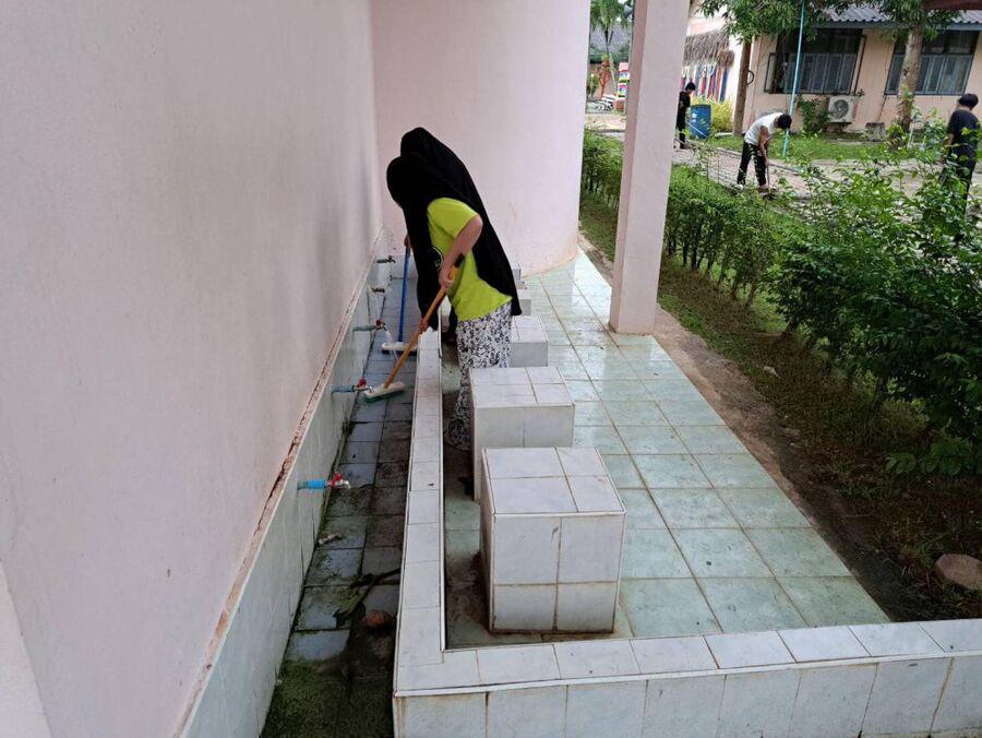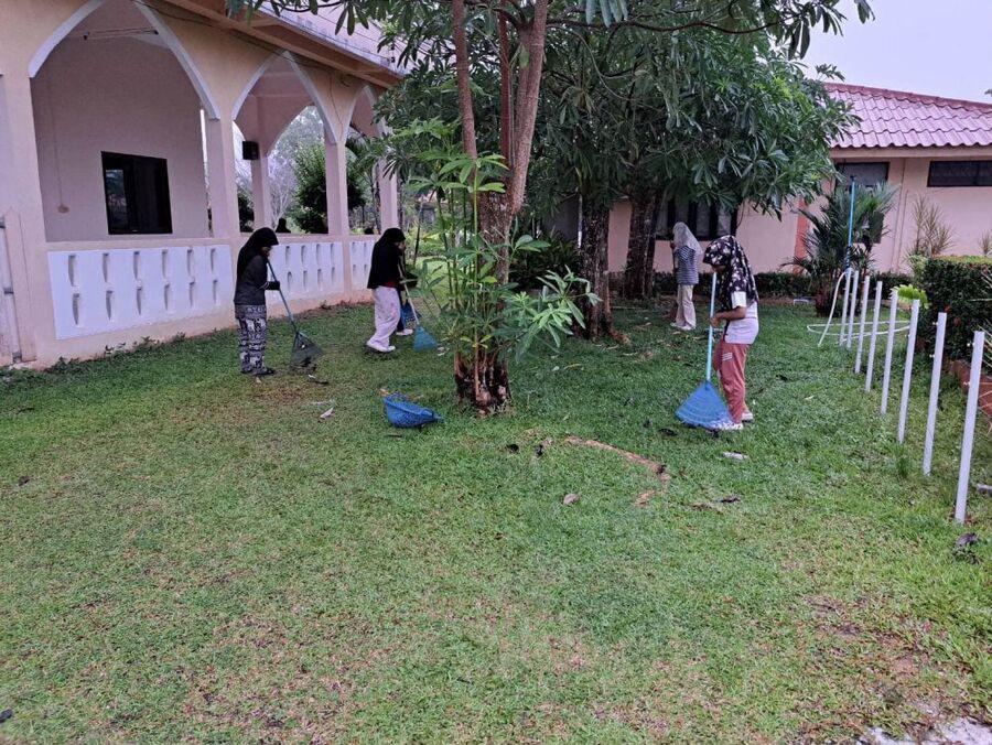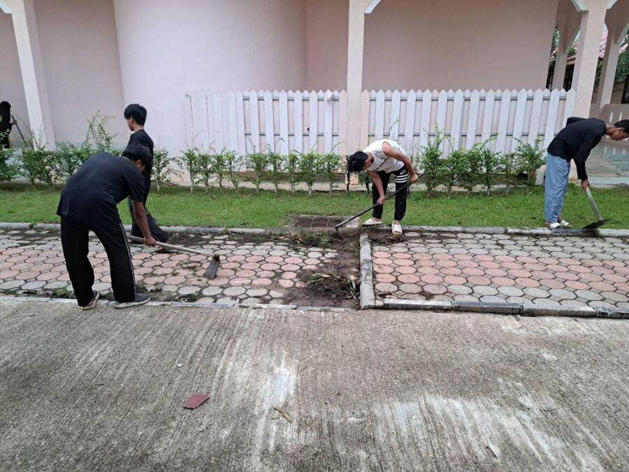 กิจกรรมยามเช้านักศึกษาในโครงการอยู่ประจำ เรียนฟรี มีอาชีพ วิทยาลัยการอาชีพรามัน ประจำวันที่ 24 สิงหาคม 2566