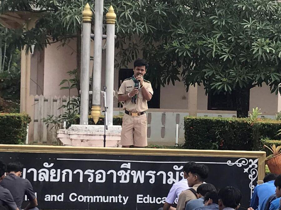 กิจกรรมตอนเช้า ของนักเรียน นักศึกษา วิทยาลัยการอาชีพรามัน ประจำวันพฤหัสบดี ที่ 24 สิงหาคม 2566 โดยนายภาณุพงศ์ ราชจันทร์ ครูผู้สอนประจำแผนกช่างยนต์ วิทยาลัยการอาชีพรามัน พบปะให้โอวาทแก่นักศึกษา S:0