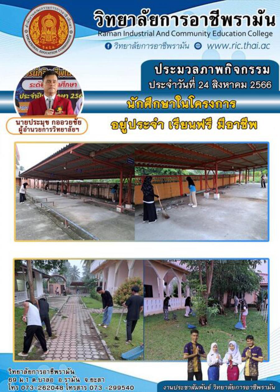 กิจกรรมตอนเช้า ของนักเรียน นักศึกษาหอพัก วิทยาลัยการอาชีพรามัน ประจำวันพฤหัสบดี ที่ 24 สิงหาคม 2566 S:0