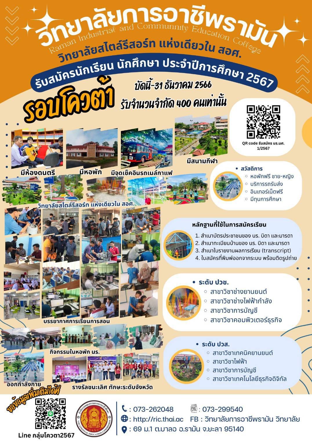 เปิดรับสมัคร นักเรียน นักศึกษาใหม่ ปีการศึกษา 2567 (รอบโควต้า)