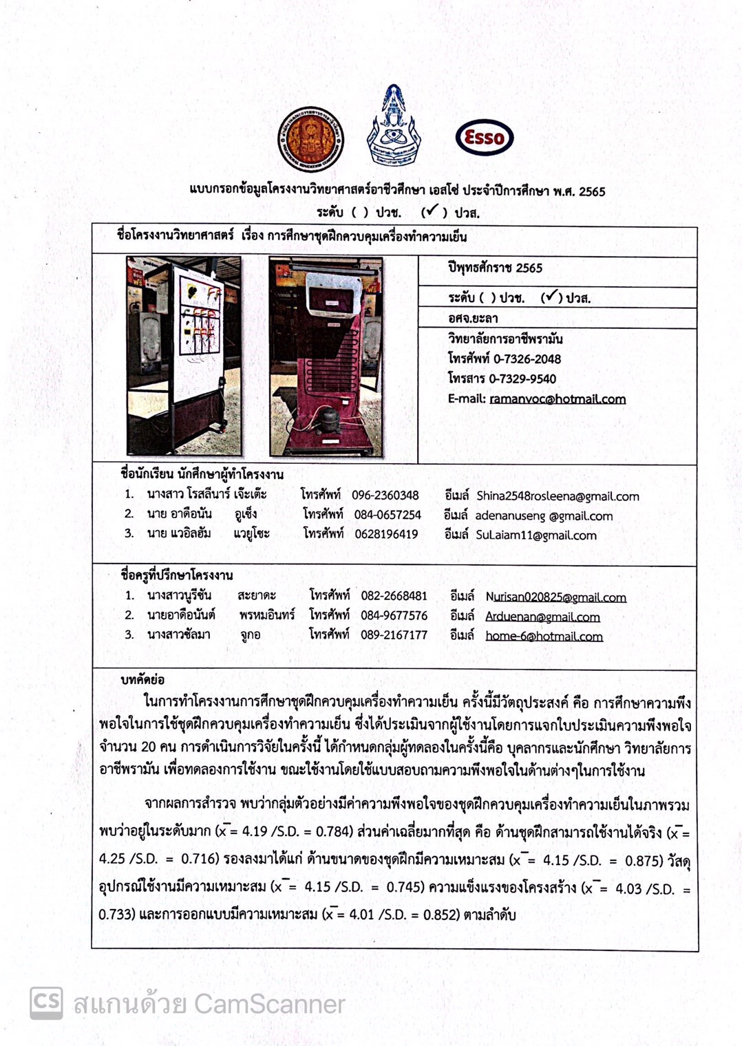 โครงงานวิทยาศาสตร์อาชีวศึกษา ระดับอาชีวศึกษา จังหวัดยะลา (ปวส. วก.รามัน)