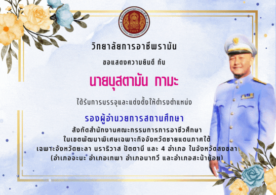 ขอแสดงความยินดีกับ นายบุสตามัน กามะ บุคลากรวิทยาลัยการอาชีพรามันที่ได้รับการบรรจุและแต่งตั้งให้ดำรงตำแหน่งรองผู้อำนวยการสถานศึกษา